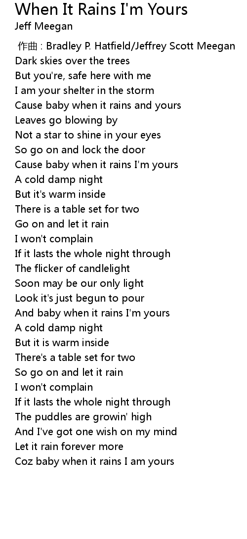 | [00:47.85] | Cause baby when it rains I'm yours |