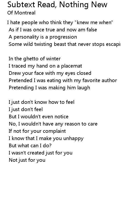 Subtext Read, Nothing New 歌词