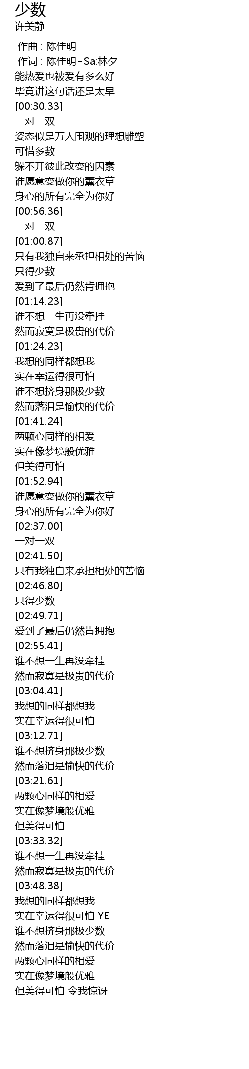 | [03:52.33] | 实在幸运得很可怕 YE |