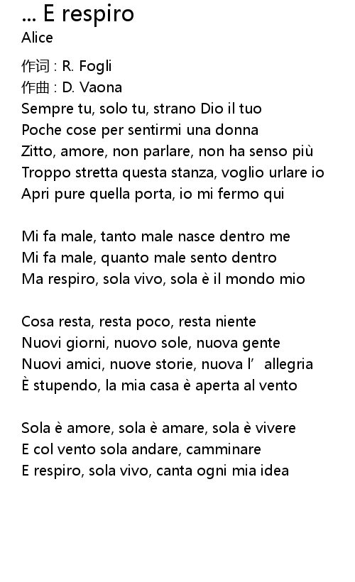 | 歌曲 | ... E respiro |