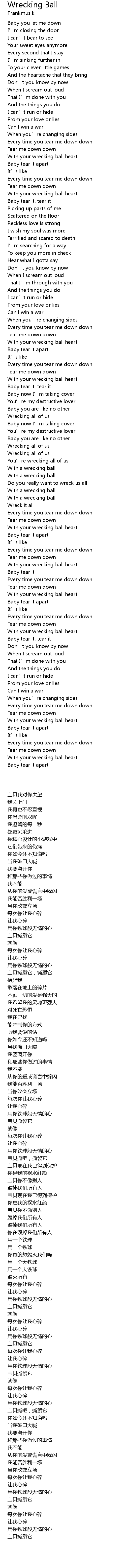 | 歌曲 | Wrecking Ball |
