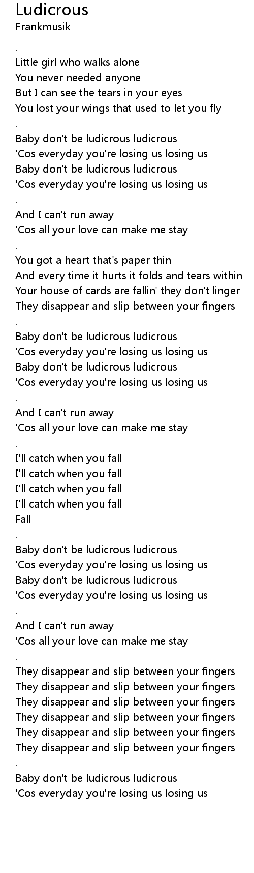 Baby don't be ludicrous ludicrous |
