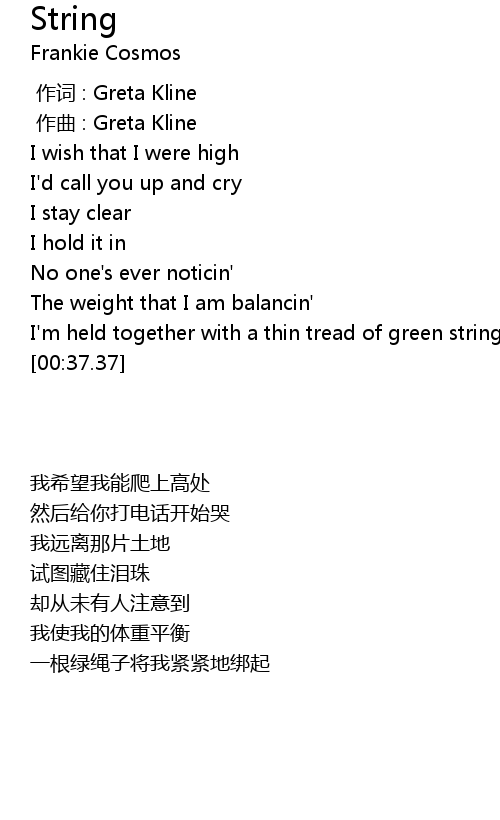 | [00:27.37] | I' m held together with a thin tread of green string |