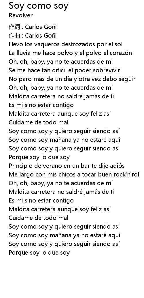 | 歌曲 | Soy como soy |