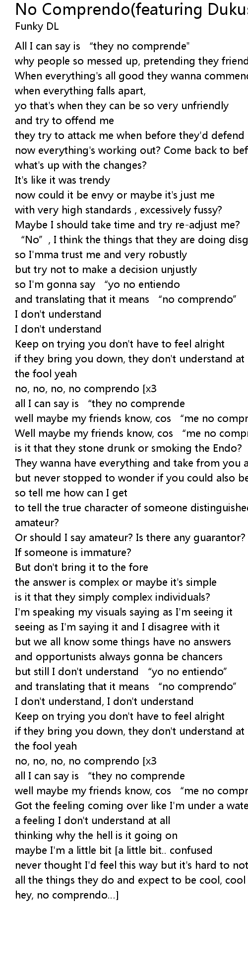 | 歌曲 | No Comprendo(featuring Dukus Alemay) |