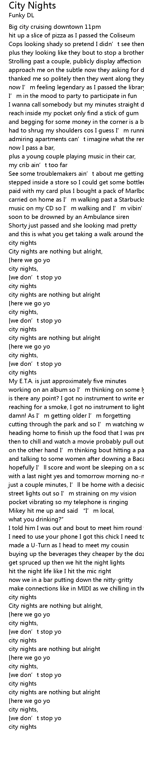 | [01:33.63] | city nights are nothing but alright |