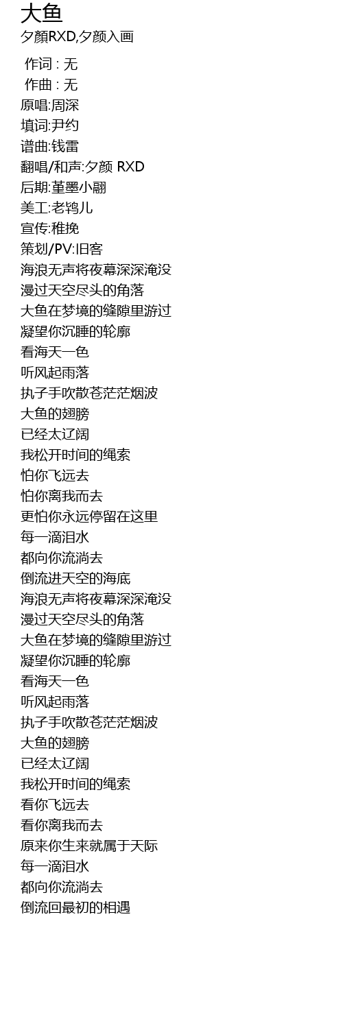 | [00:58.946] | 大鱼在梦境的缝隙里游过 |