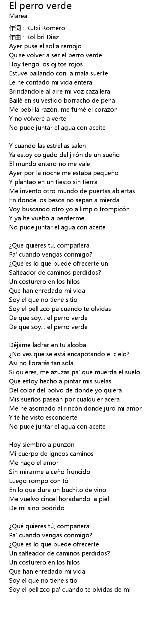 | 歌曲 | El perro verde |