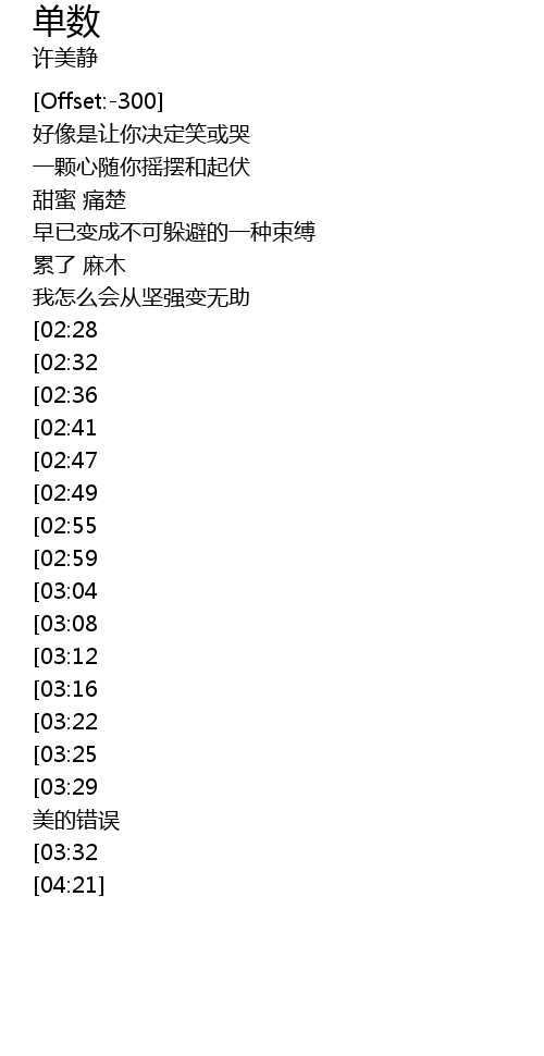 | [00:47][02:28] | 两颗心总是会变成单数 |