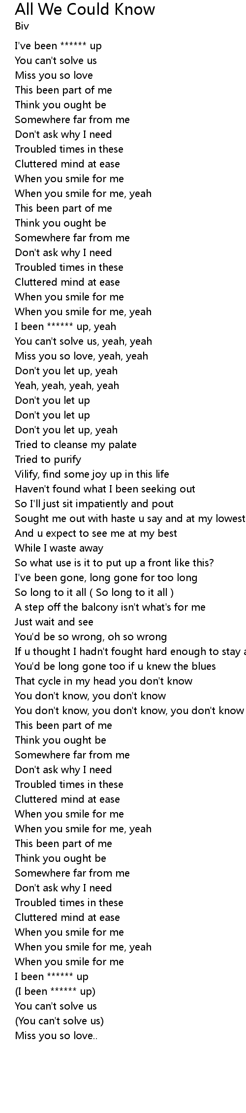 | 歌曲 | All We Could Know |