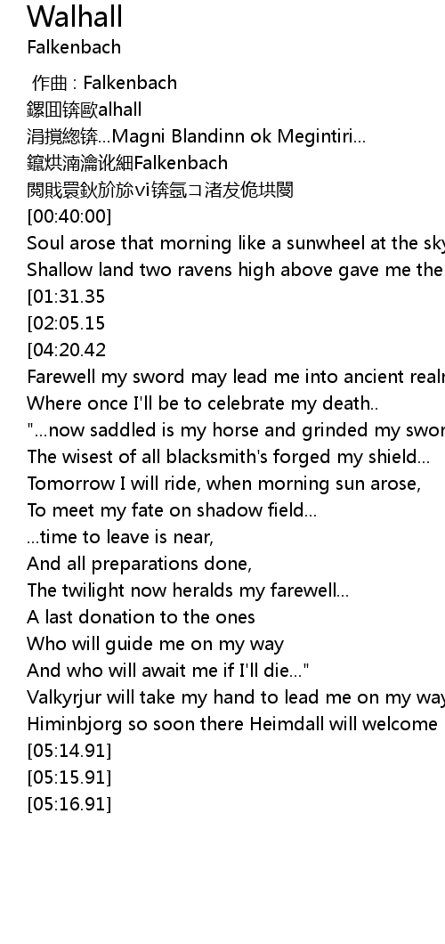 | [00:00.00] | 作曲 : Falkenbach |