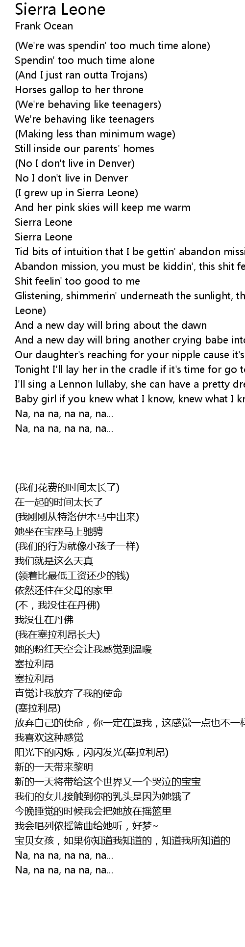 Tid bits of intuition that I be gettin' abandon mission (Sierra Leone) |