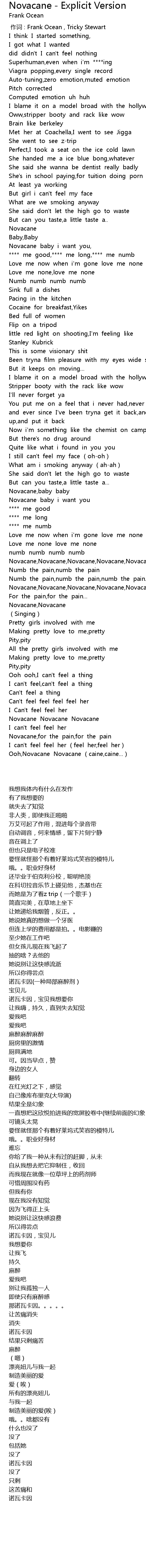 | 歌曲 | Novacane - Explicit Version |