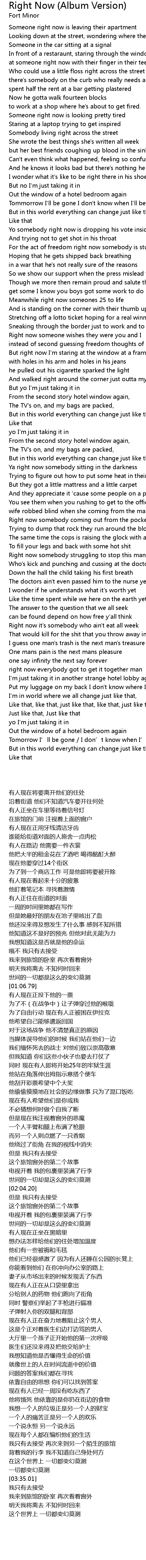 | [03:06.54] | Right now it's somebody who ain't eat all week |
