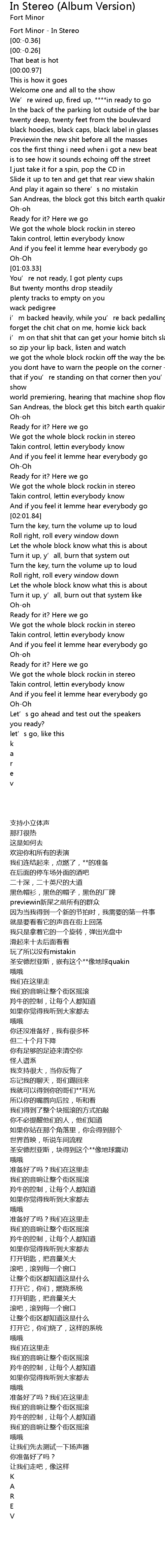 | [00:52.92] | We got the whole block rockin in stereo |