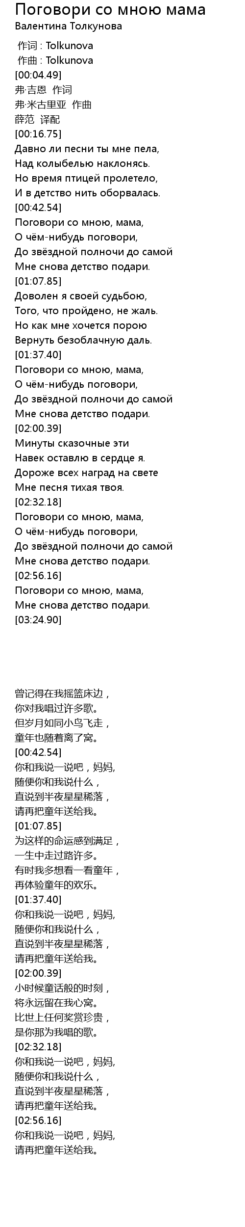 | [02:32.59] | Поговори со мною, мама, |