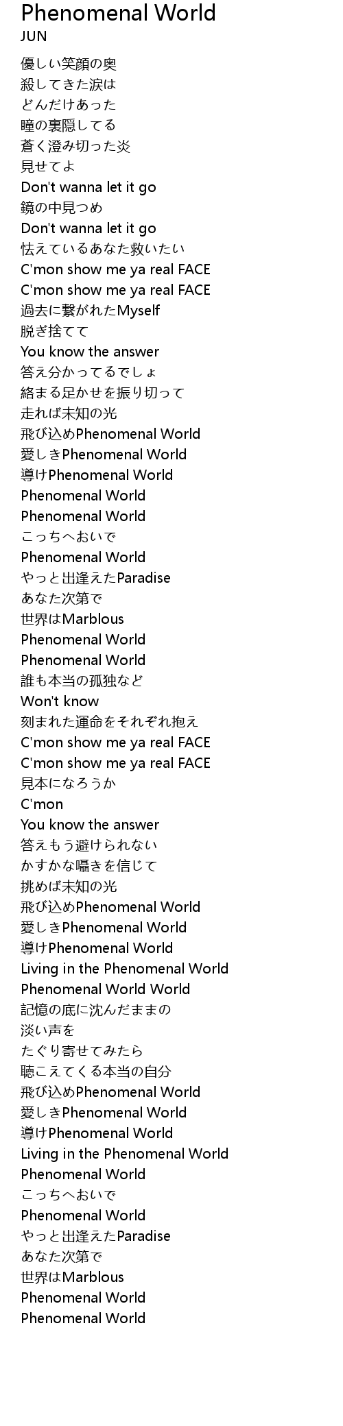 | [03:08.23] | 飛び込めPhenomenal World |