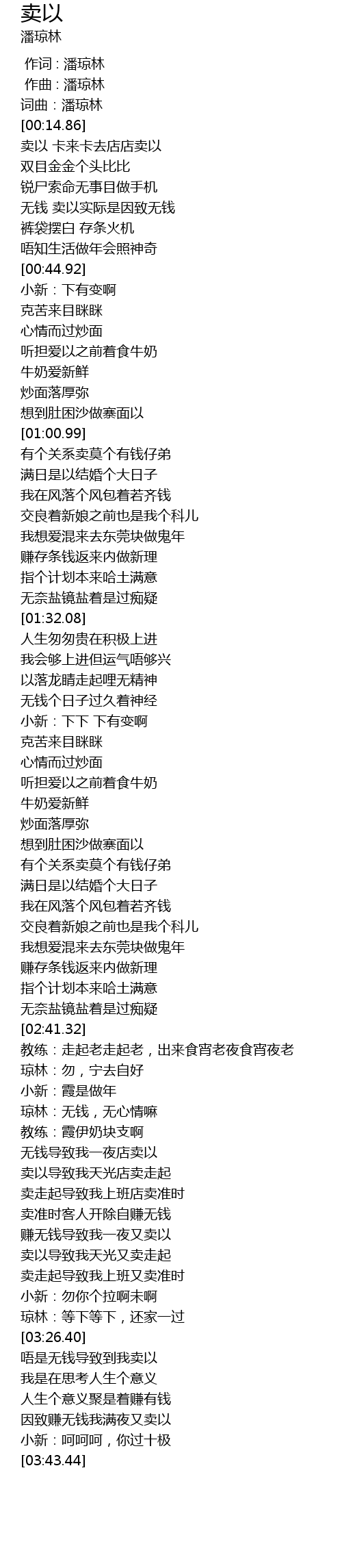 | [03:17.95] | 卖走起导致我上班又卖准时 |