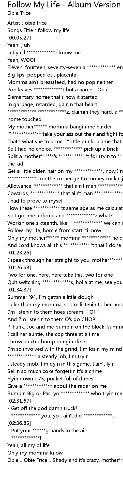 | [00:24.39] | Pop leaves *************t but a name - Obie |