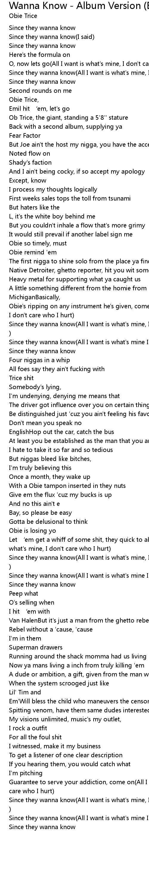 | 歌曲 | Wanna Know - Album Version (Explicit) |