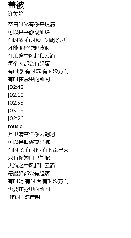 | [00:00.00] | 作词 : 陈佳明 |