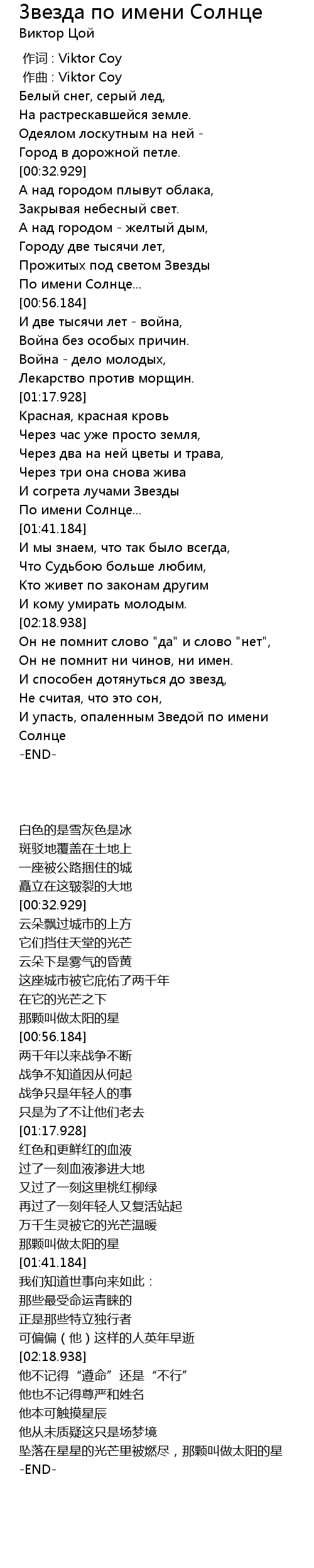 | [00:01.000] | zuò qǔ : Viktor Coy |