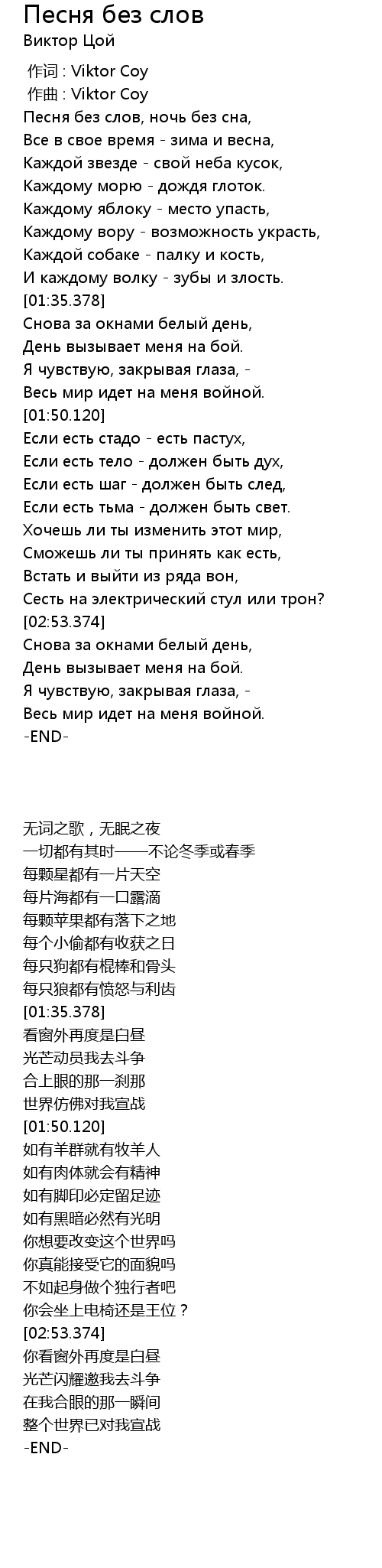 | [00:01.000] | zuò qǔ : Viktor Coy |