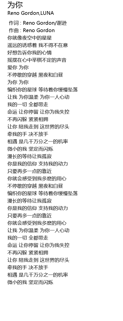 | [00:00.000] | 作词 : Reno Gordon/谢逊 |