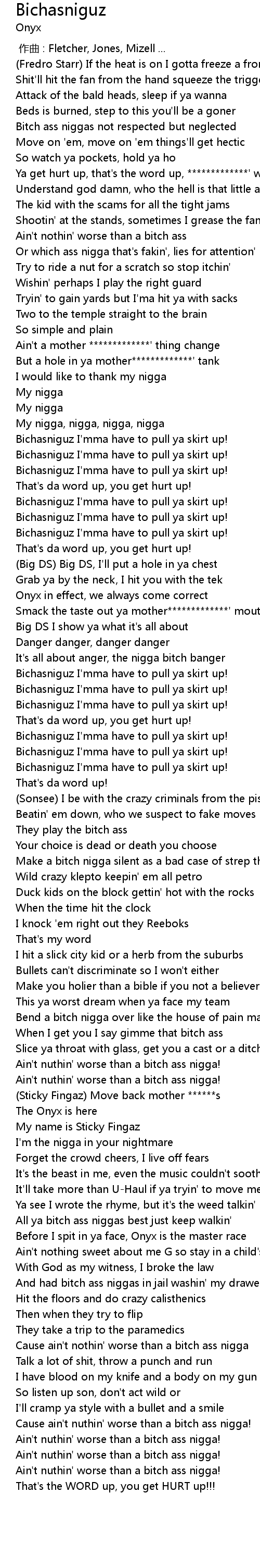 | [03:10.364] | All ya bitch ass niggas best just keep walkin' |