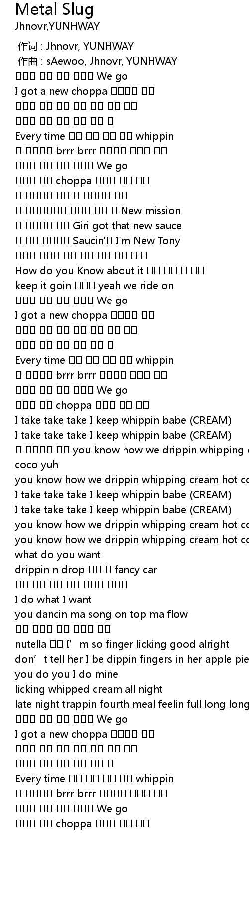 | [01:28.626] | I take take take I keep whippin babe CREAM |