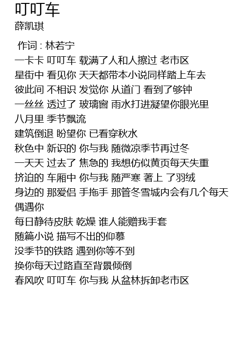 | [03:00.530] | 春风吹 叮叮车 你与我 从盆林拆卸老市区 |