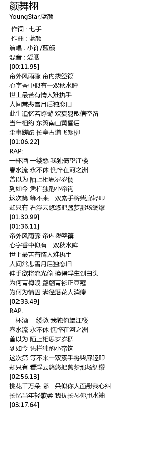 | [00:09.50] | 演唱 : 小许/蓝颜 |