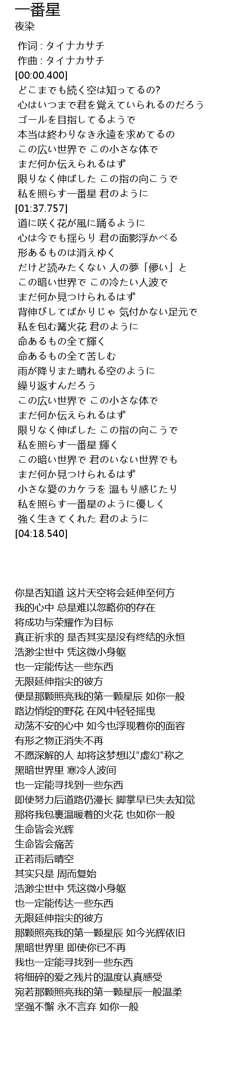 | [03:58.674] | 私を照らす一番星のように優しく |