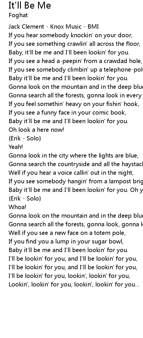 Baby it'll be me and I'll been lookin' for you. Oh yeah!