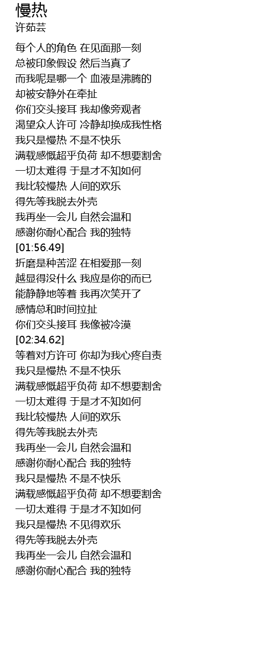 | [03:52.36] | 我只是慢热 不见得欢乐 |