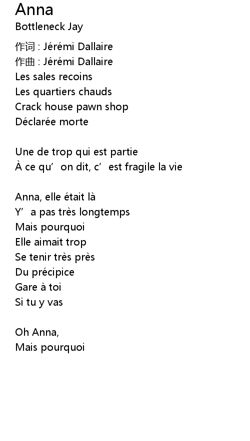 | 作词 : Jérémi Dallaire | |
