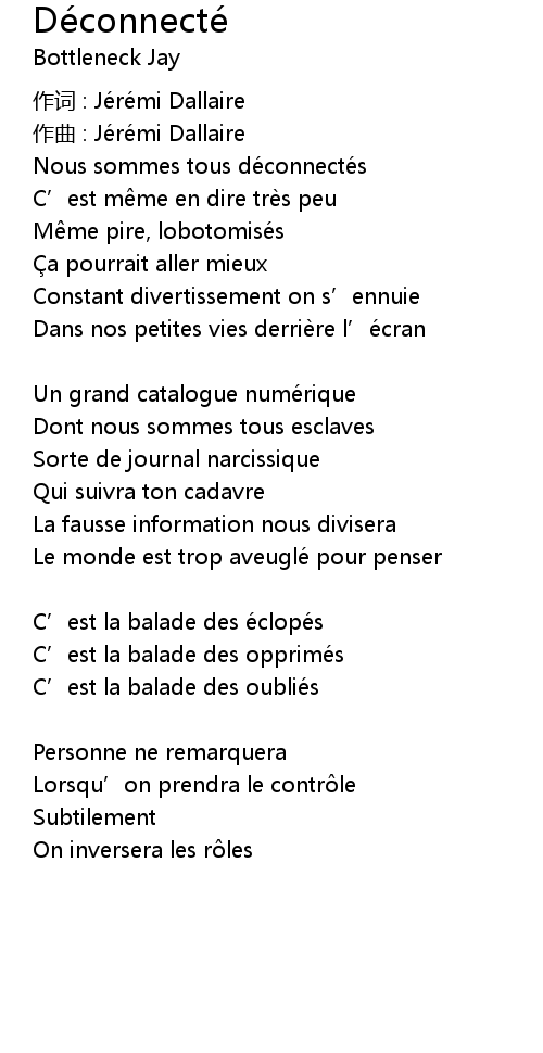 | 歌曲 | Déconnecté |