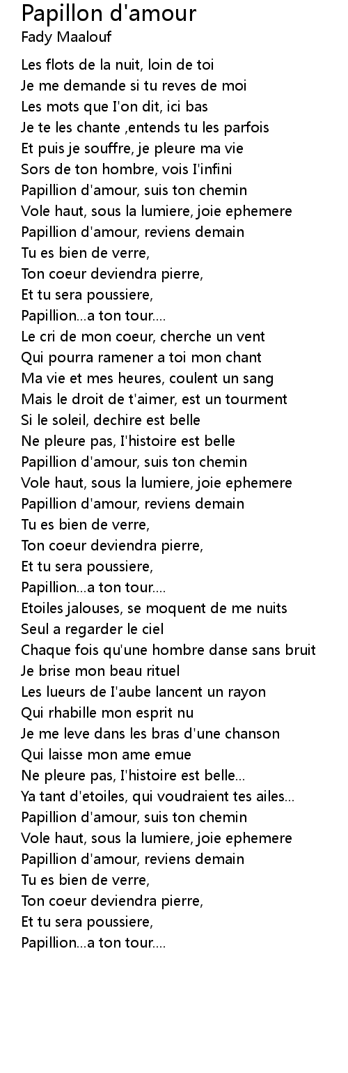 Papillion d'amour, reviens demain |