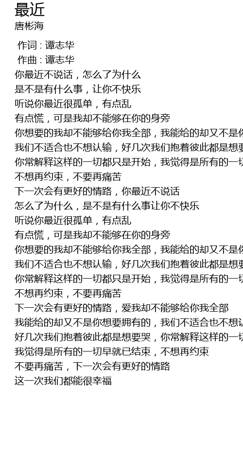 | [00:18.178] | 你最近不说话,怎么了为什么 |