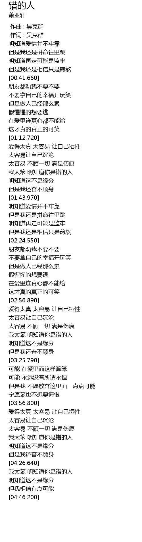 | [04:12.950] | 我太笨 明知道你是错的人 |