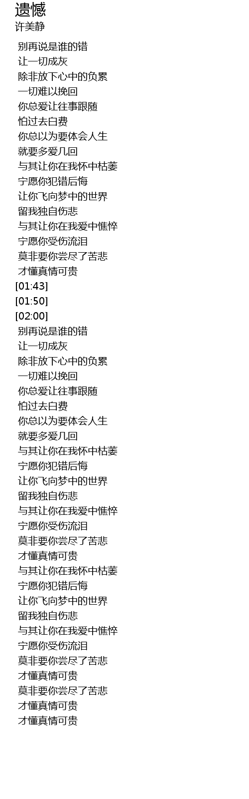 | [01:13] | nìng yuàn nǐ fàn cuò hòu huǐ |