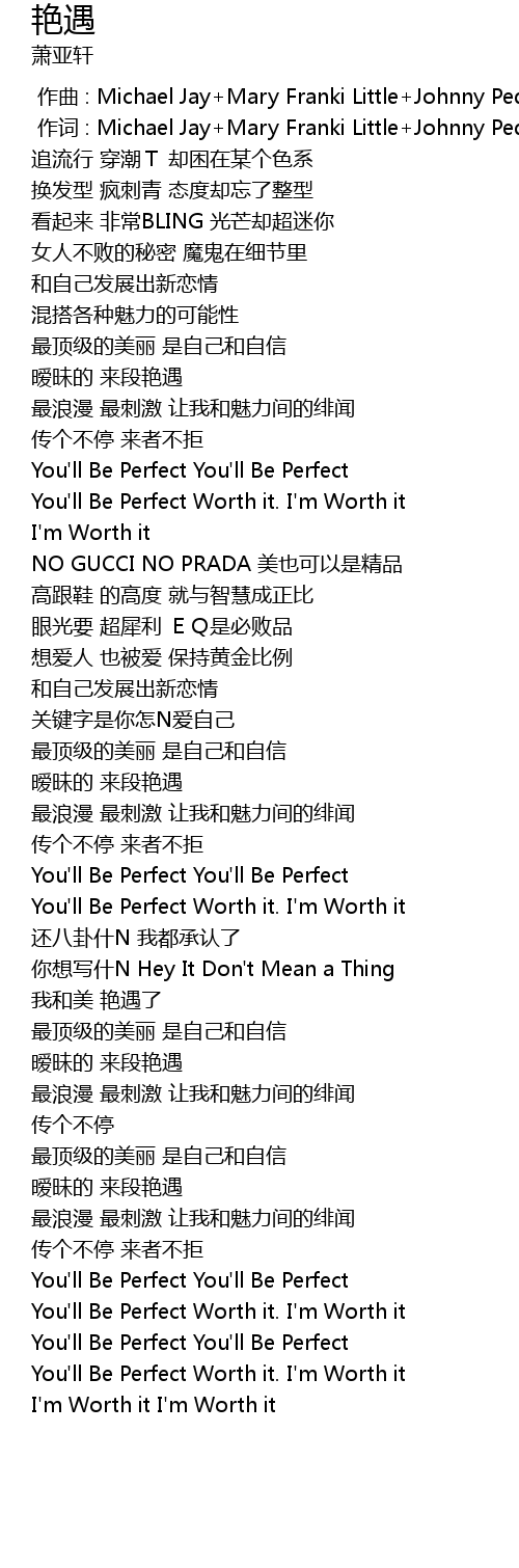 | [02:53.240] | You'll Be Perfect Worth it. I'm Worth it |