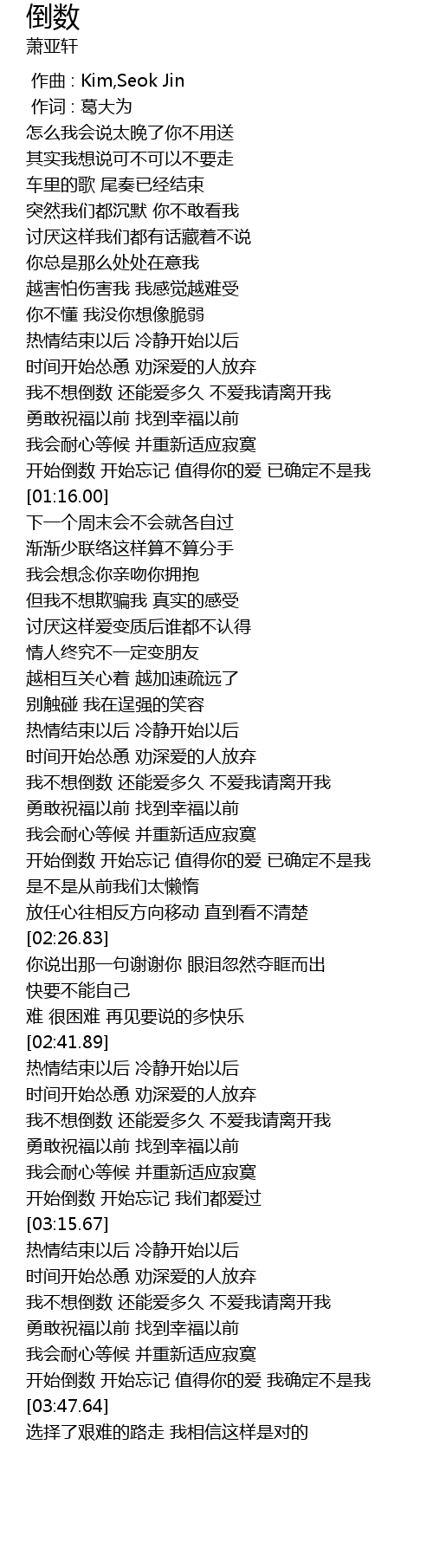 | [03:38.18] | 开始倒数 开始忘记 值得你的爱 我确定不是我 |