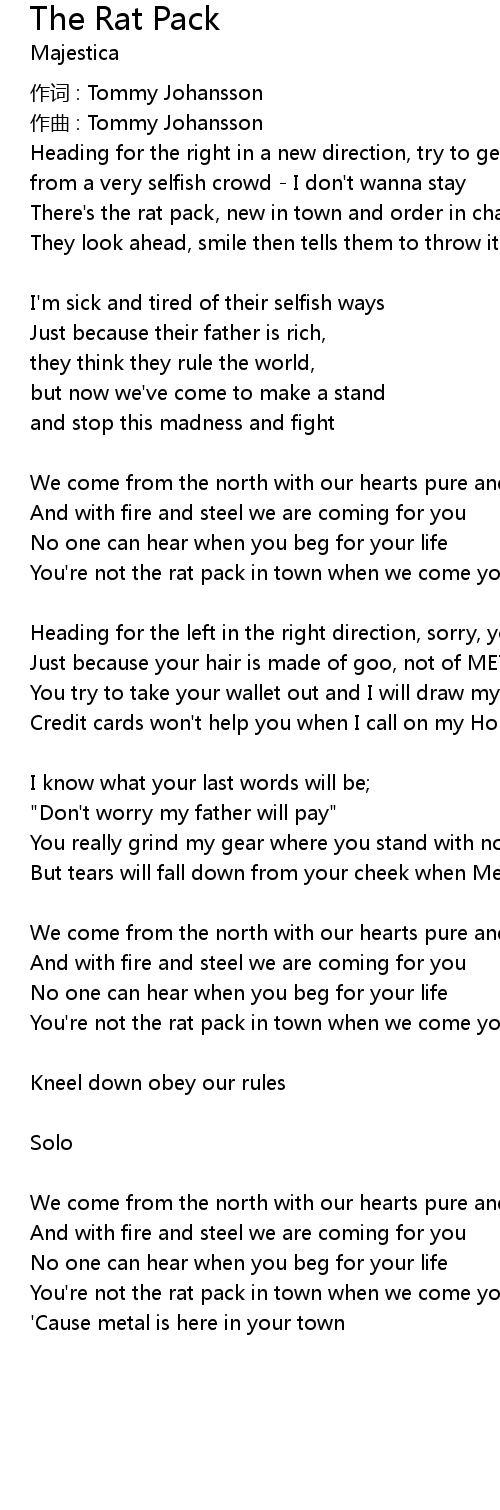 | You' re not the rat pack in town when we come your way | |