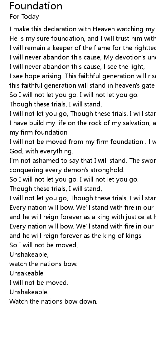 | I will not be moved from my firm foundation . I will stand on the word of my God, with everything. | |