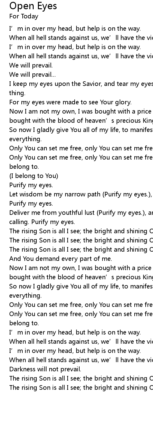 | Only You can set me free, only You can set me free, so I fix my eyes upon You. | |