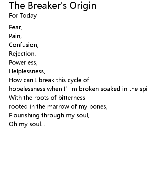 | hopelessness when I’m broken soaked in the spirit of anger. | |