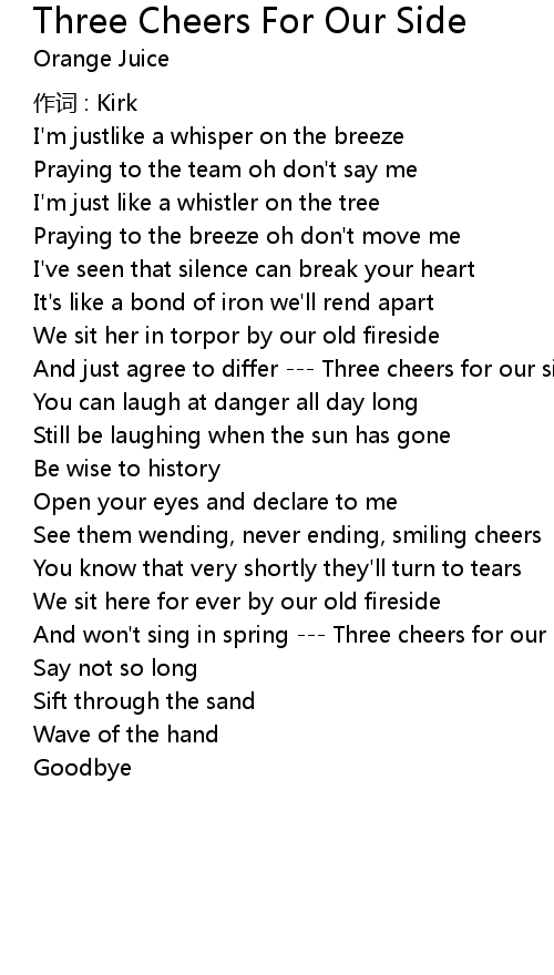 | 歌曲 | Three Cheers For Our Side |
