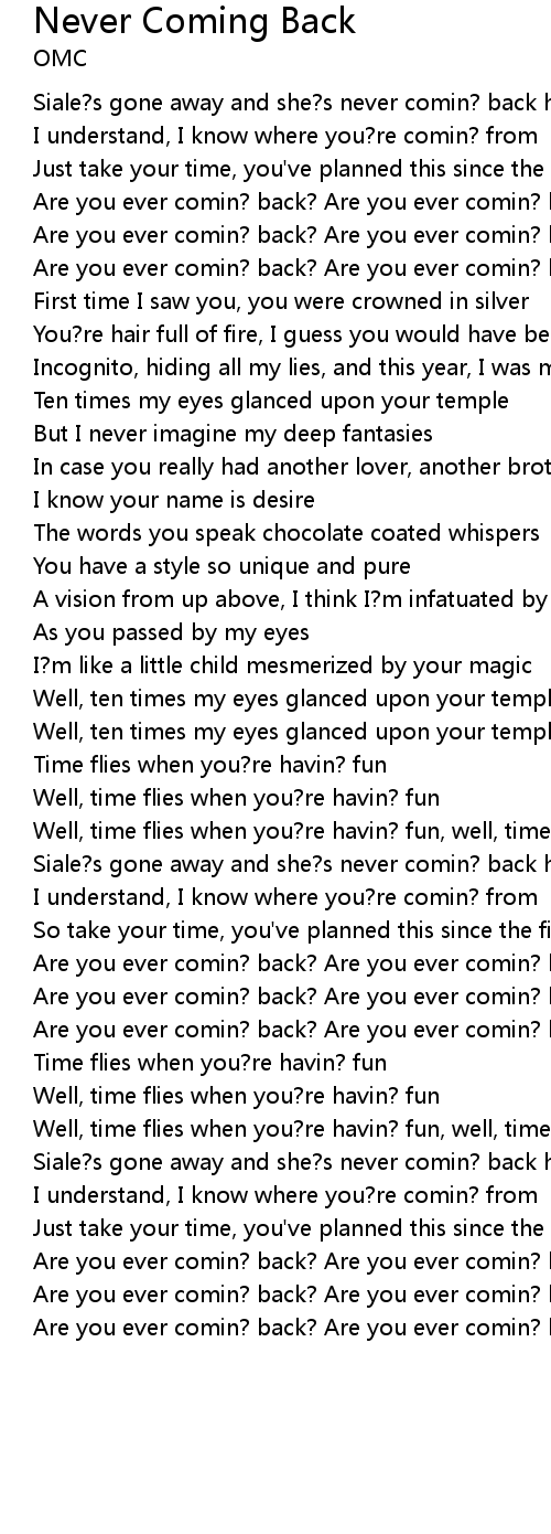 Never Coming Back 歌词