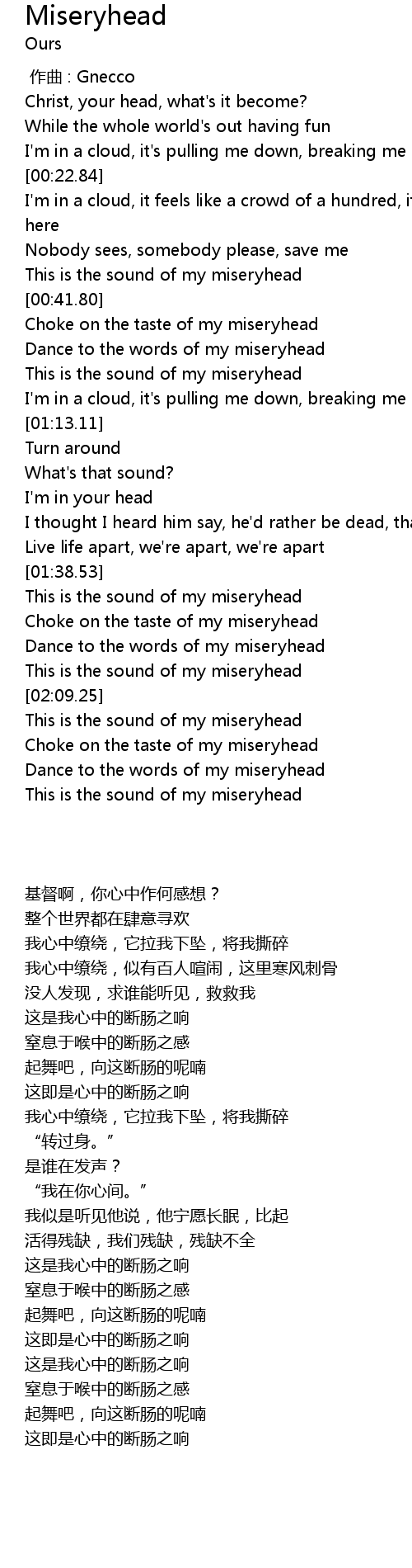 | [02:44.31] | Choke on the taste of my miseryhead |